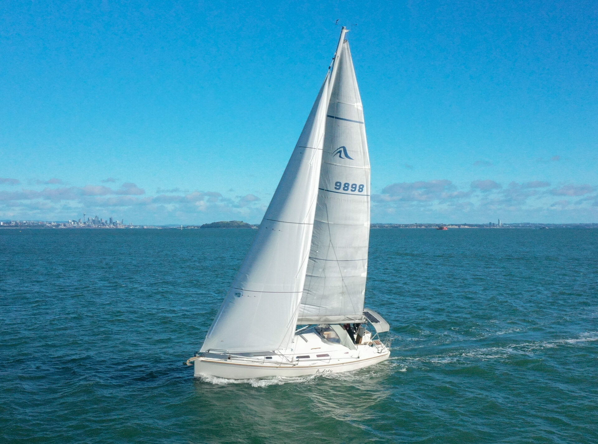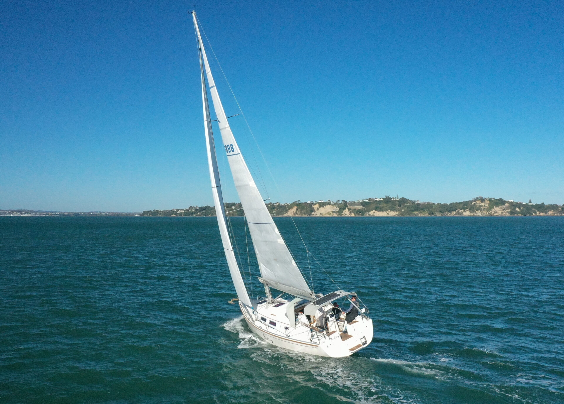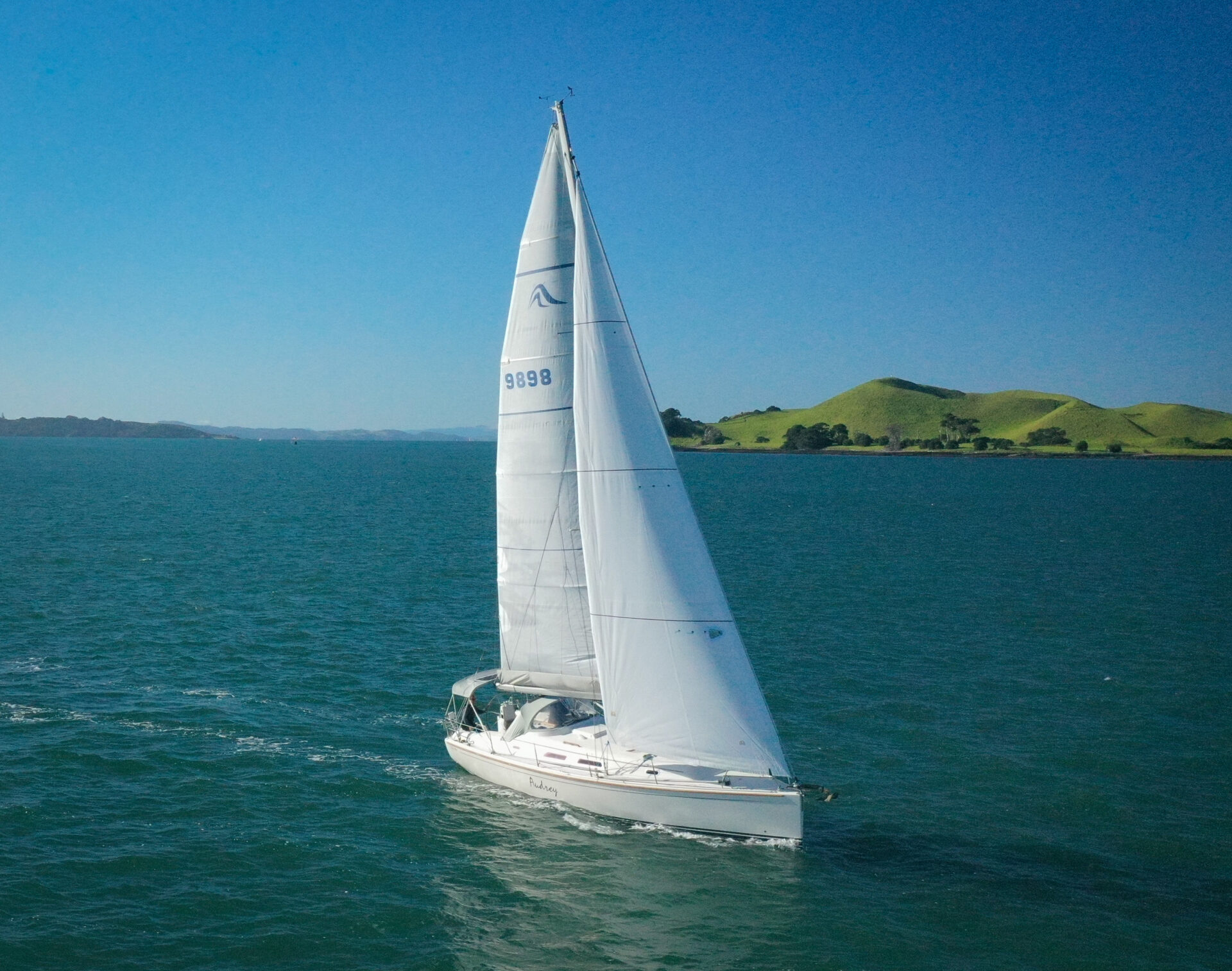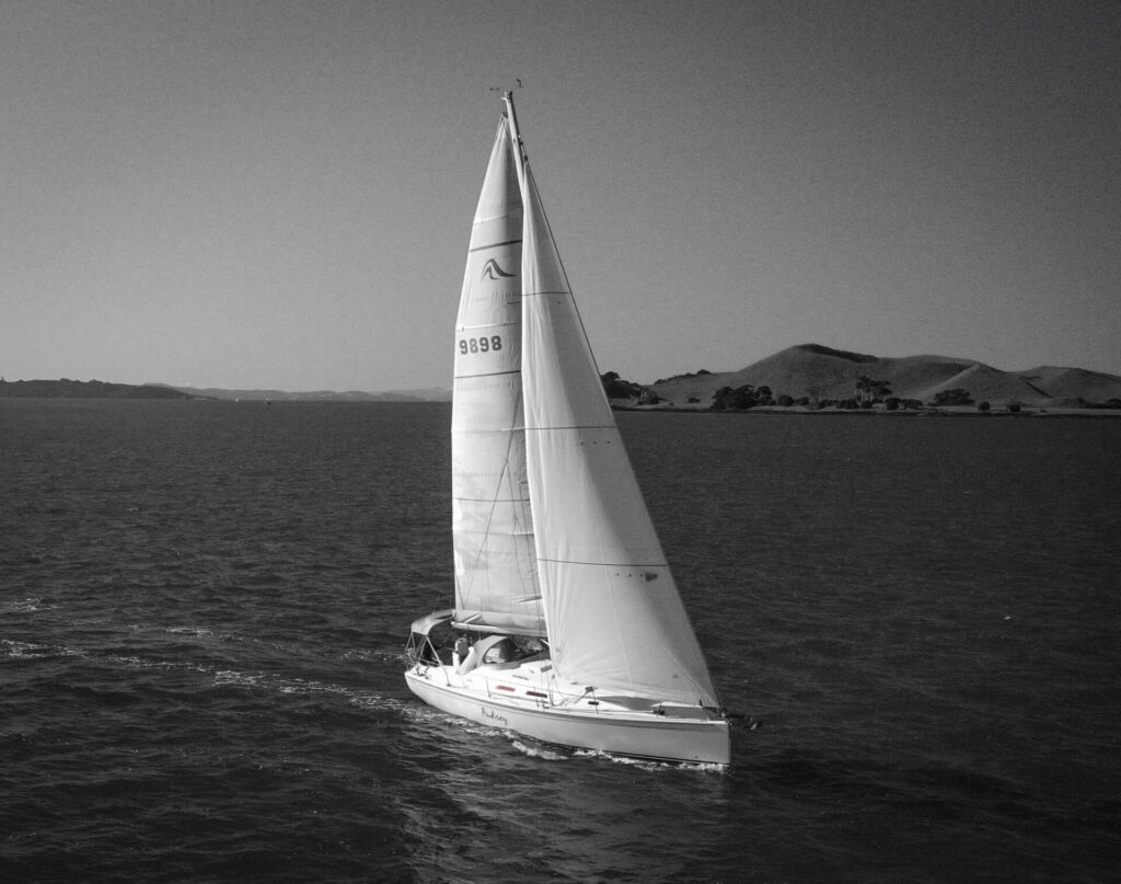 She boasts a good range of sails to cover all wind conditions and set you up for some casual club racing if desired. These include the 2025 Doyles Stratus 600 headsail, Doyles cruising Delta mainsail, Spinnaker with pole, Asymmetric Spinnaker with snuffer and self-tacking jib. The 370e is set up with the mainsail traveller on the coach roof and Audrey has the powered sheet winches for easy short-handed sailing. The electronics have been upgraded to B&G.