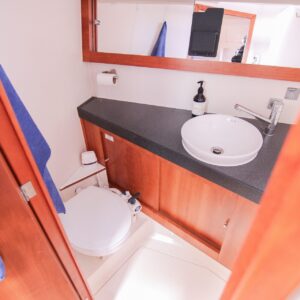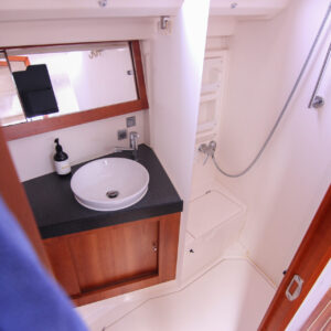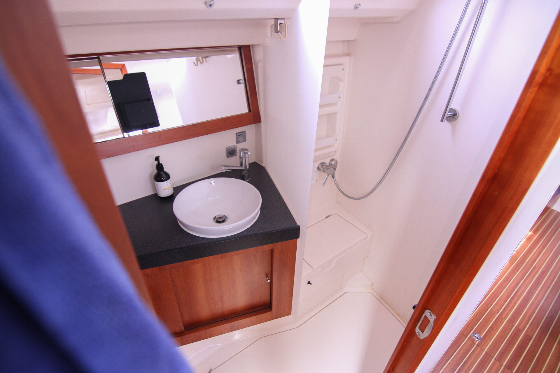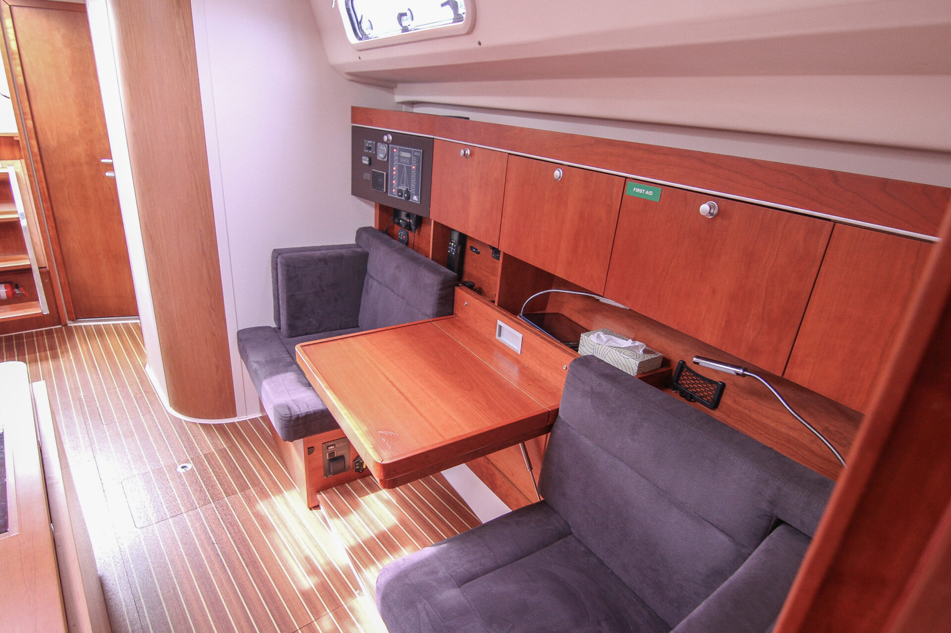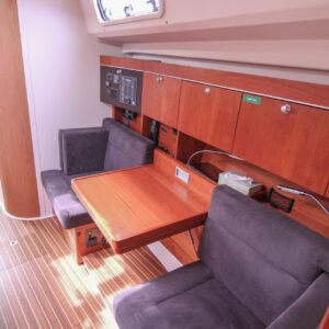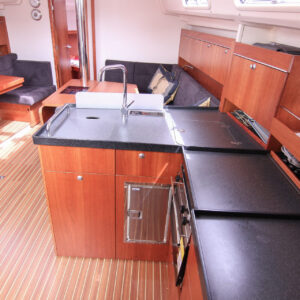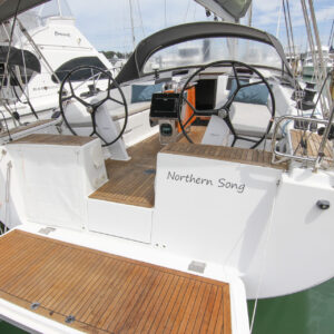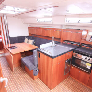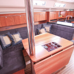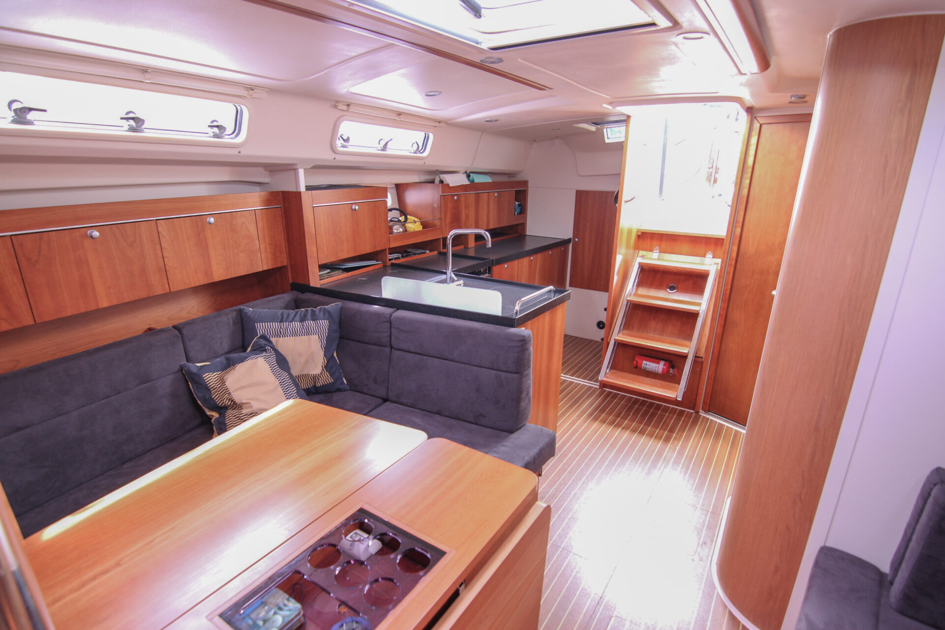 She is a two-cabin layout with the extra large galley and dedicated storage room. The Hanse 415 is renowned for its easy short-handed sailing abilities and respected for their performance. She has received many upgrades to maximise the cruising comfort.