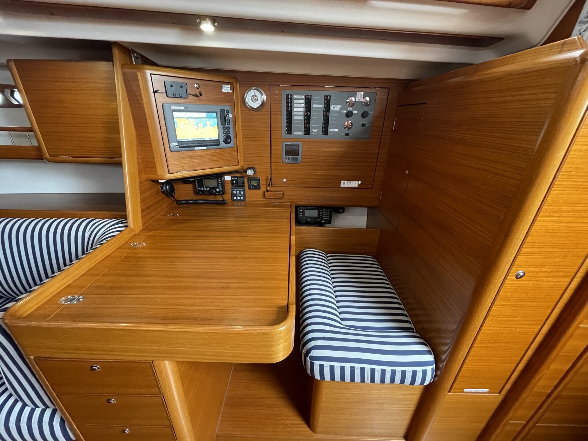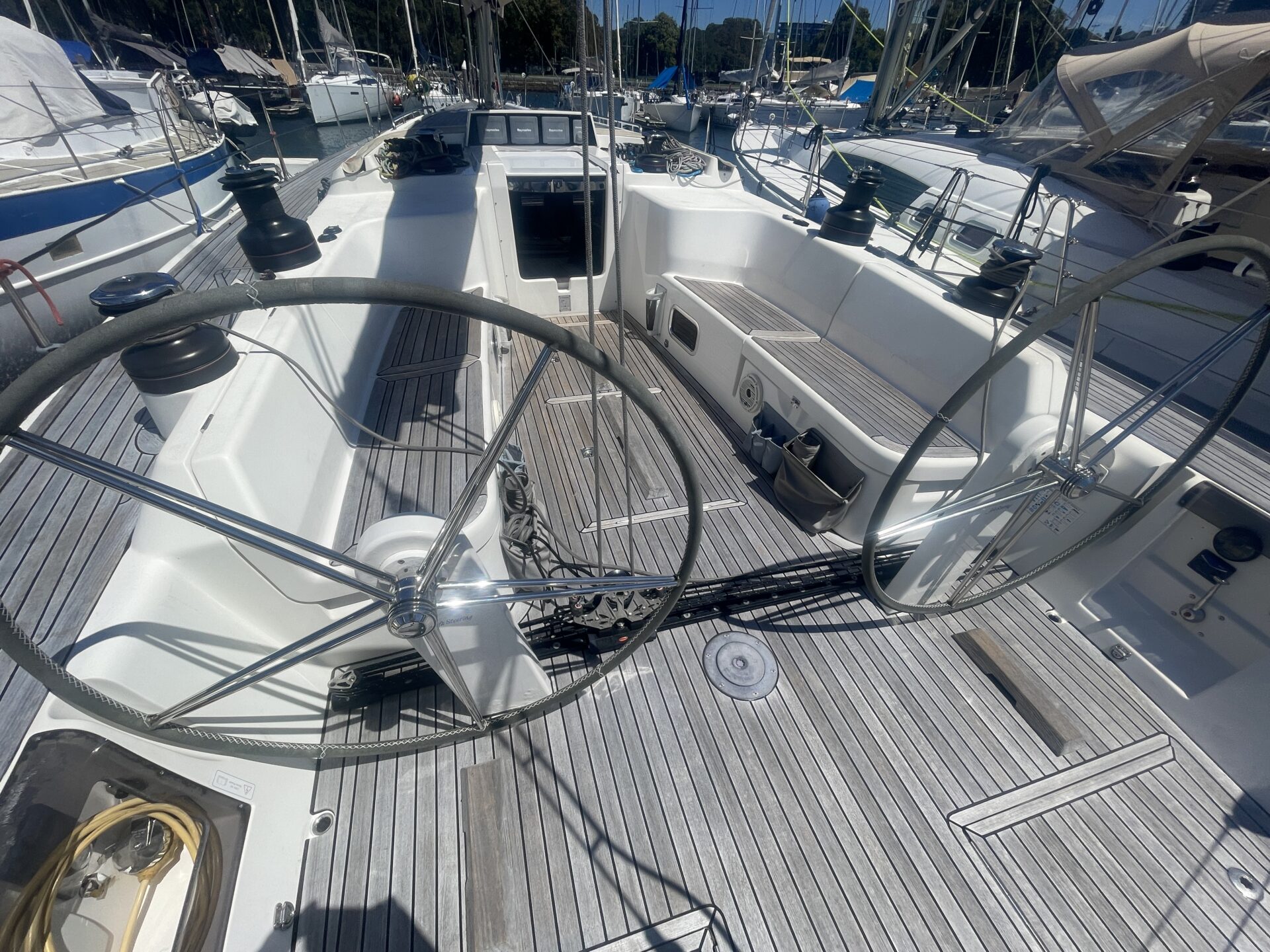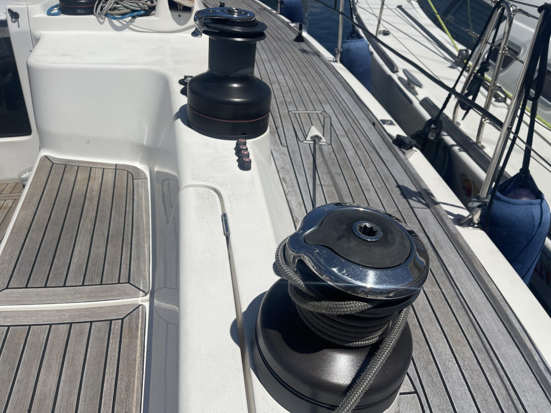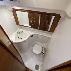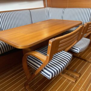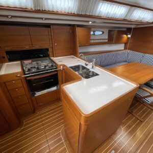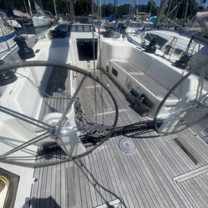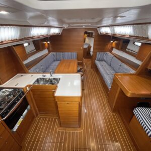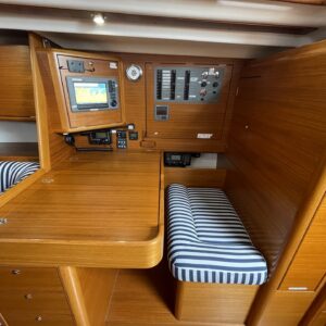 ‘Wax Lyrical’ is equally suited for both cruising and racing, with a cockpit designed for versatility. Equipped with oversized winch systems, including electric primaries, and a well-maintained sail wardrobe that remains competitive, this yacht is ready to perform. The underdeck jib furler, mainsheet, and control lines contribute to a clean, uncluttered deck, ensuring ease of handling whether you’re racing or cruising.