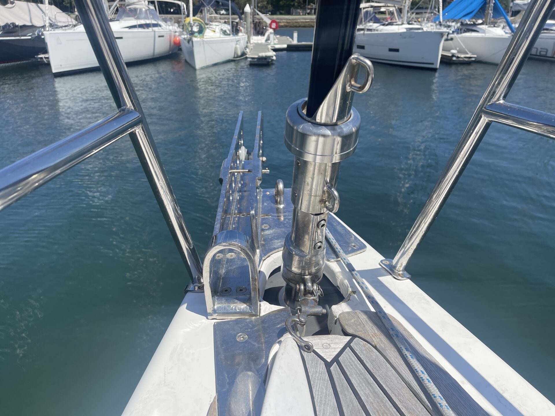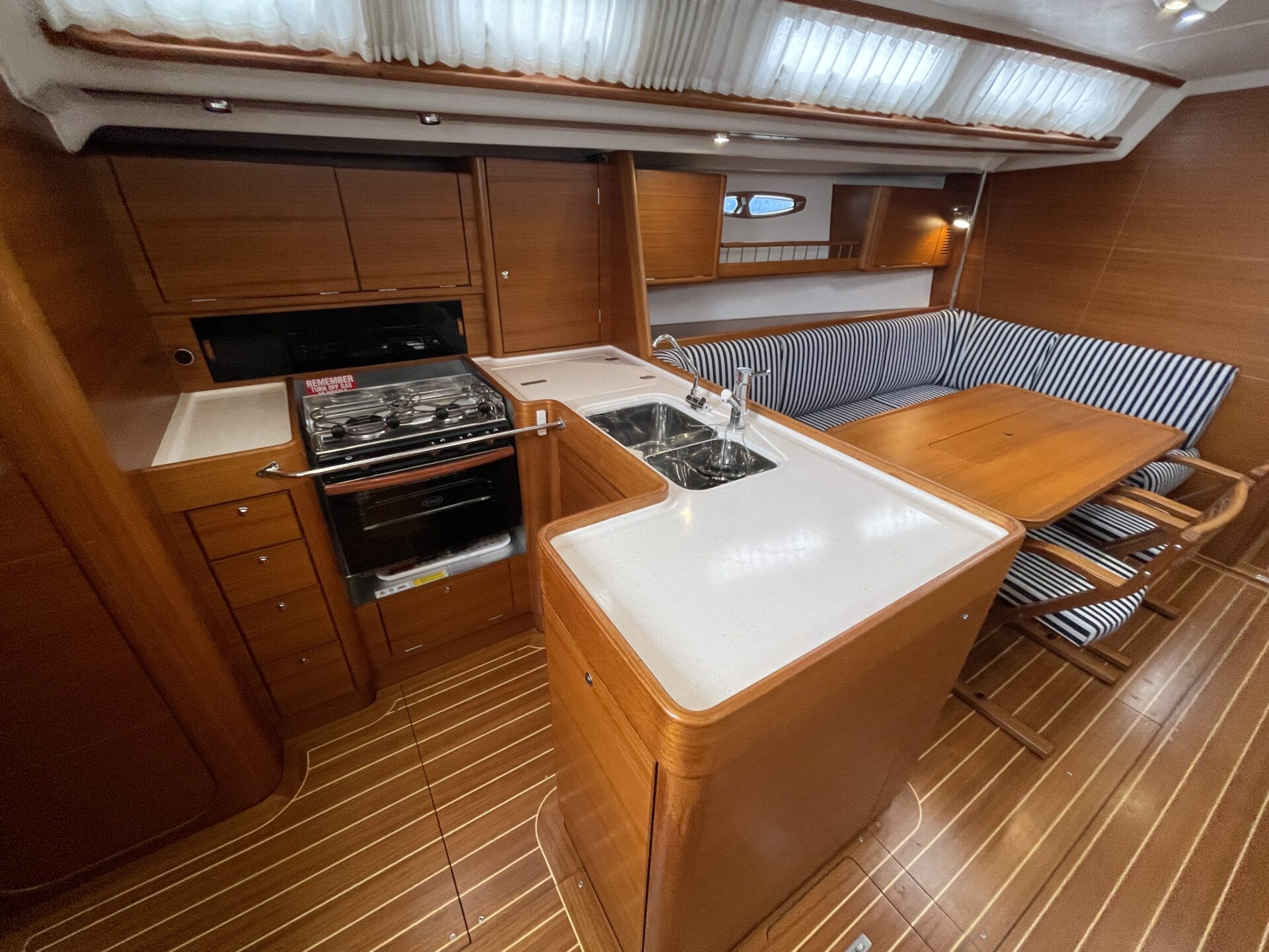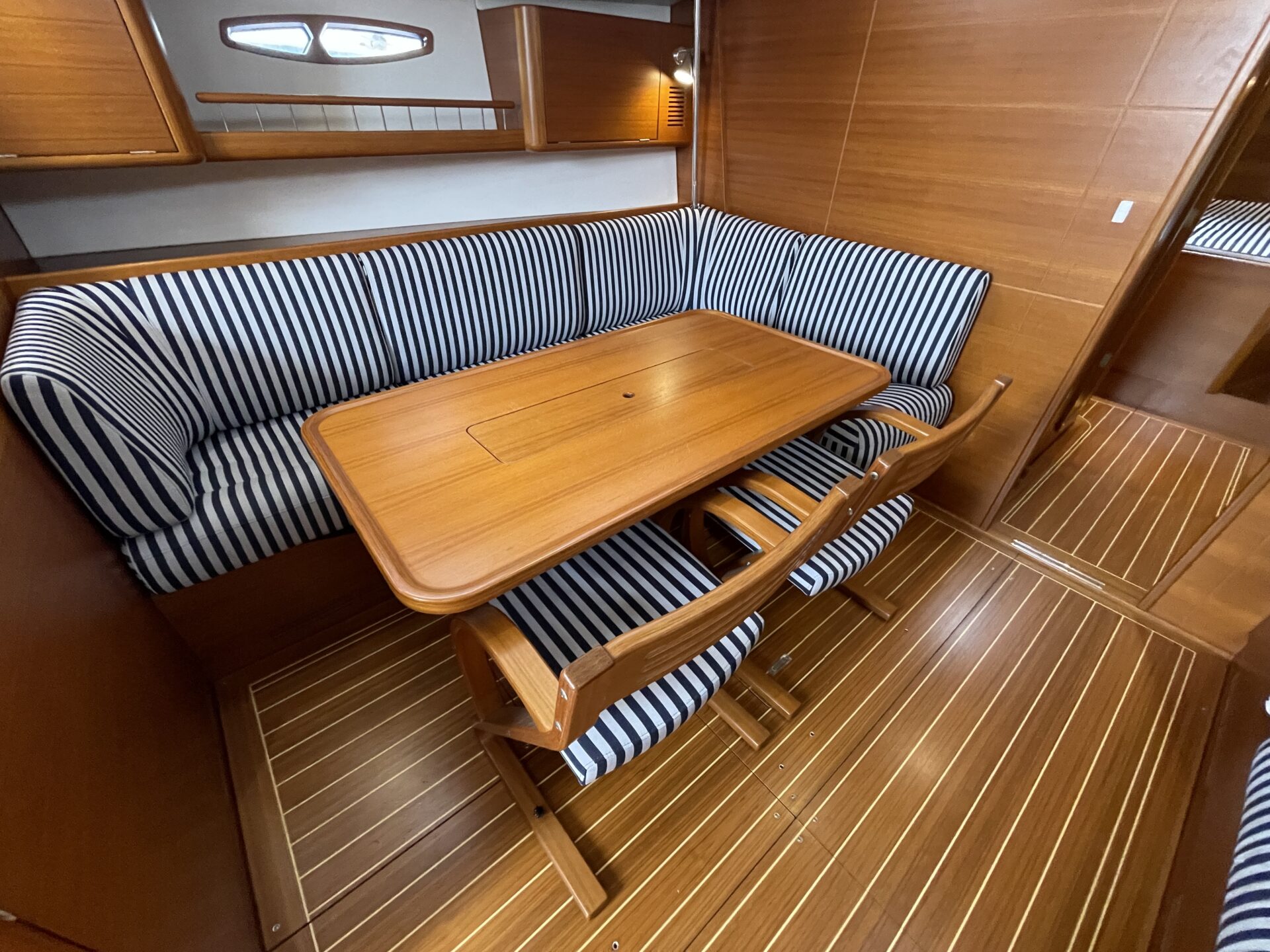‘Wax Lyrical’ is equally suited for both cruising and racing, with a cockpit designed for versatility. Equipped with oversized winch systems, including electric primaries, and a well-maintained sail wardrobe that remains competitive, this yacht is ready to perform. The underdeck jib furler, mainsheet, and control lines contribute to a clean, uncluttered deck, ensuring ease of handling whether you’re racing or cruising.